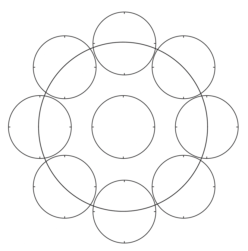 Each Big Moon is divided into eight Little Moons, each reflecting the overall power and influence of its position on the Star Maidens Circle, and a ninth center Little Moon. Each of the nine Little Moons is subdivided into the eight aspects or directions of the Star Maidens Circle. Every 1/4 turn of a Little Moon equals nine months. Every Little Moon takes three years to complete, and every Big Moon takes twenty-seven years to complete.